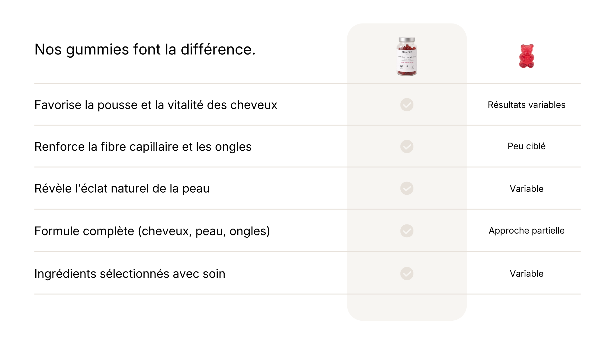 Pourquoi choisir les gummies cheveux, peau & ongles BiomeFit ?